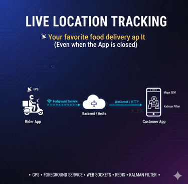 Learn how Zomato live tracking works! Decode the system design behind food delivery apps: GPS, Foreground Service, WebSocket, and Redis for real-time location